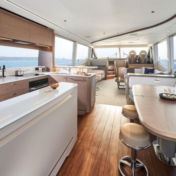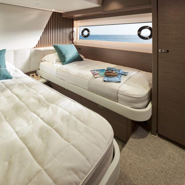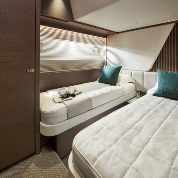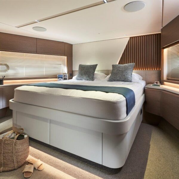 A nova Y72 é o primeiro Yacht com flybridge a ser equipado com o revolucionário controle de direção ativo Princess que gera monitoração e ajuste constante para melhorar a dinâmica e o conforto. Essa tecnologia, combinada com um novo formato de casco, permitirá que a Y72 gere desempenho e eficiência de combustível significativamente aprimorados. Com acabamentos de alto padrão em todo o iate, suas características de design são comparáveis às de iates maiores da Classe Y. Seu espaçoso salão tem um layout que favorece a socialização com uma área aberta de bar e cozinha, complementada por um sistema de áudio Naim que abrange áreas múltiplas. Oito hóspedes podem ser acomodados em quatro cabines tipo suíte bem equipadas. A cabine do proprietário ocupa a largura total do iate e é acessível através de uma escada privativa no salão. Há também a opção de uma cabine de popa com duas camas para a tripulação ou hóspedes ocasionais.