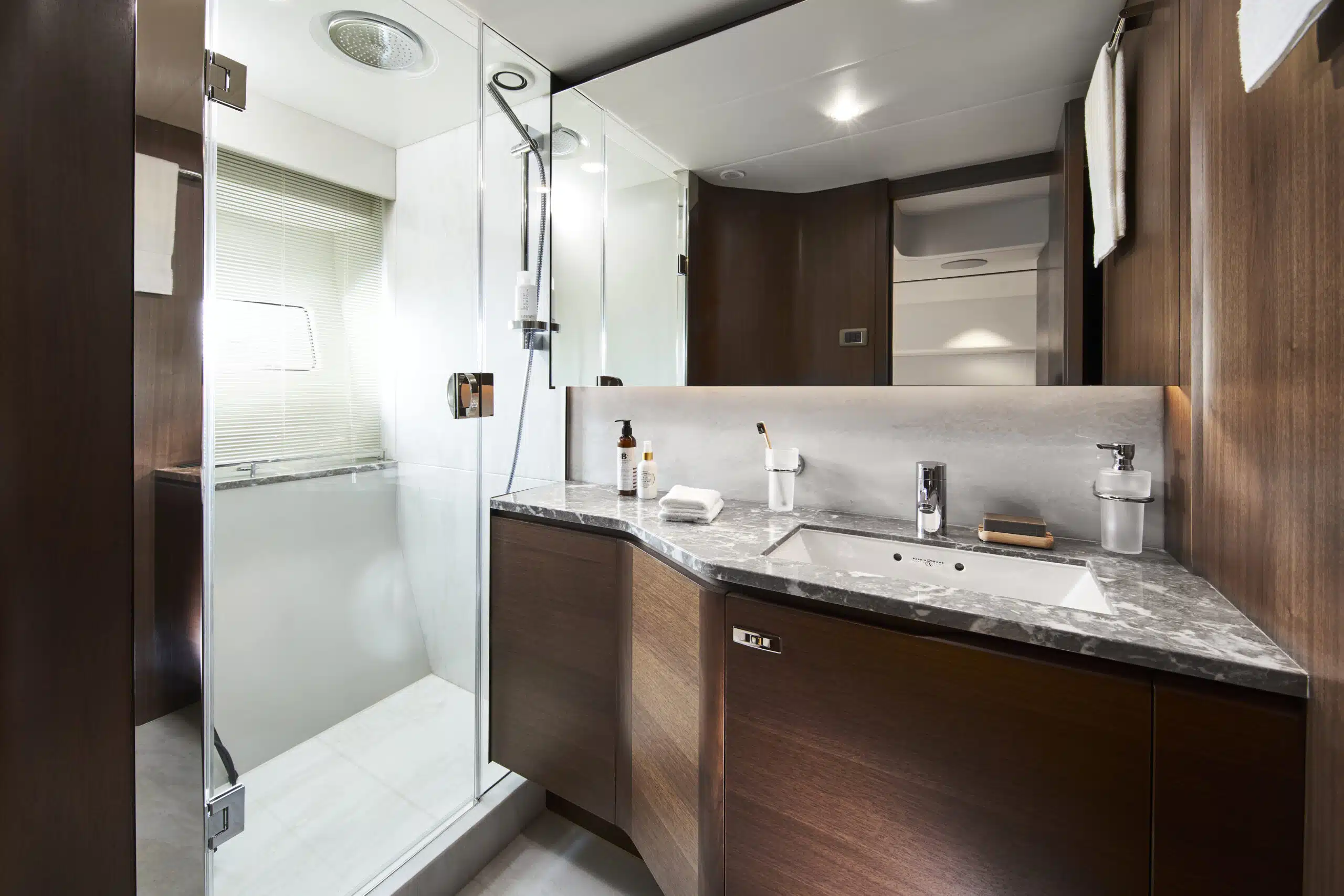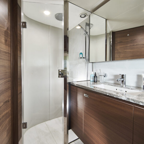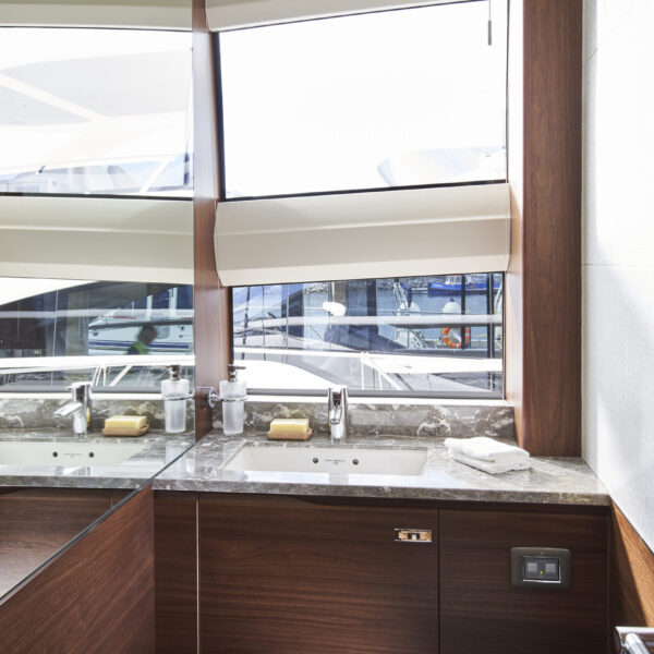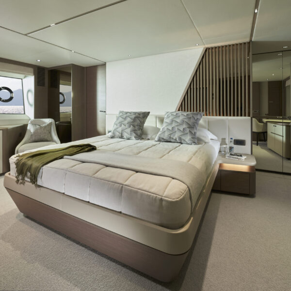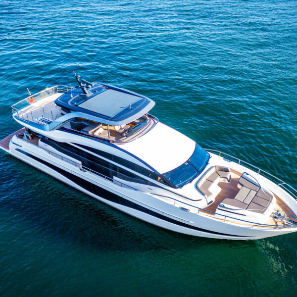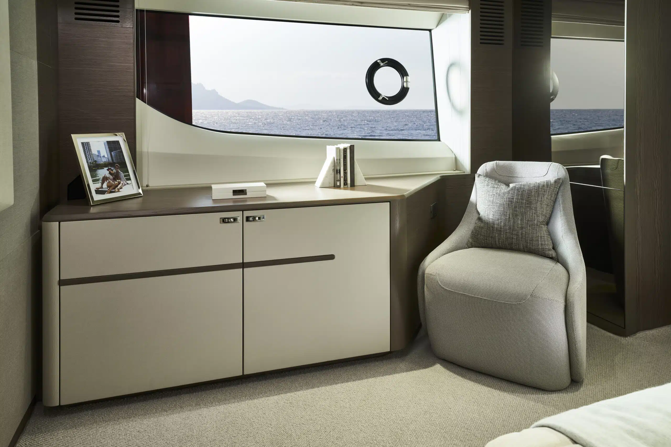 A nova Y85 é um triunfo do design contemporâneo. O seu perfil elegante e arrebatador abriga um interior magnífico que redefine o valor de referência para a vida moderna. A cabine do armador é um convite irresistível ao entretenimento ao ar livre com a grande área de refeições oposta ao minibar e complementada com um colchão para banho de sol. Um convés principal de nível único expansivo oferece amplo espaço de entretenimento, com um arranjo flexível para a cozinha. Três áreas de estar separadas asseguram a máxima privacidade para os hóspedes, possibilitando que a tripulação se movimente discretamente no iate. Com motores MAN V12 duplos que o impulsionam a uma velocidade máxima de 33 nós, ele voa sobre os seus contemporâneos sem olhar para trás. Imperdível, a nova Y85 é inconfundivelmente Princess.