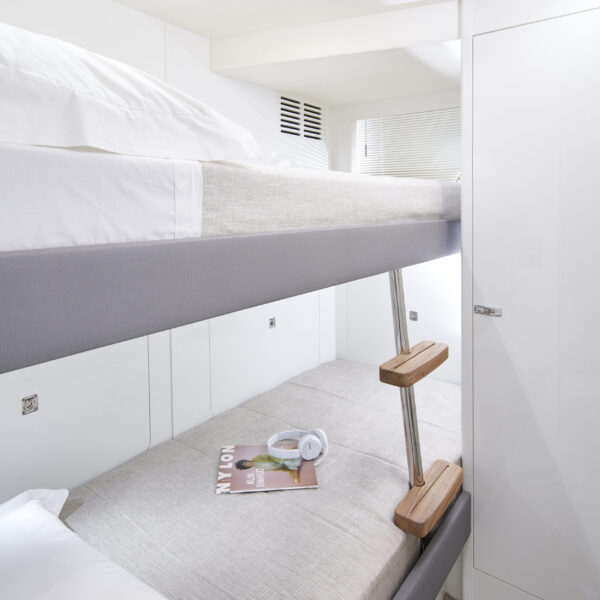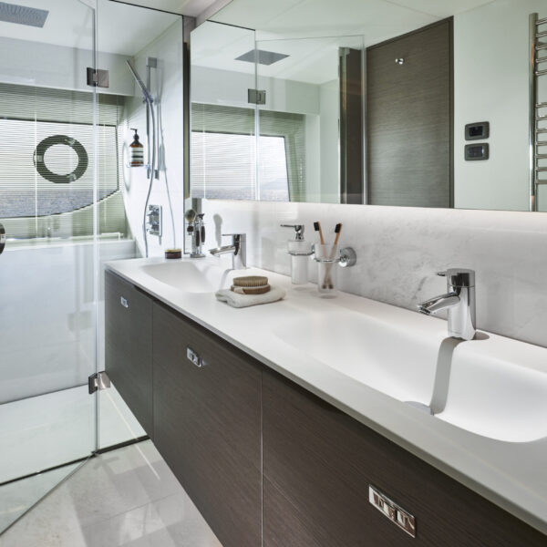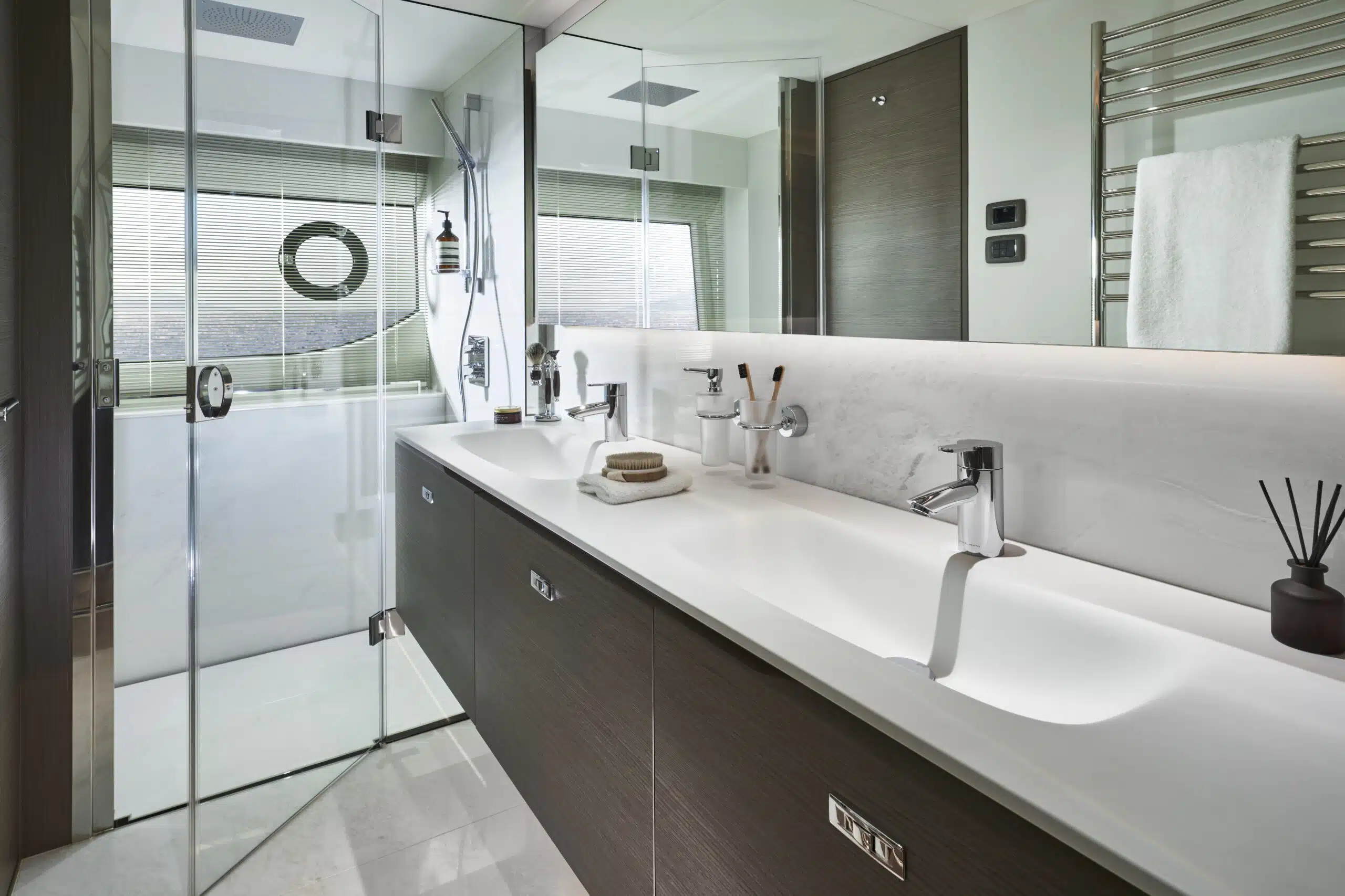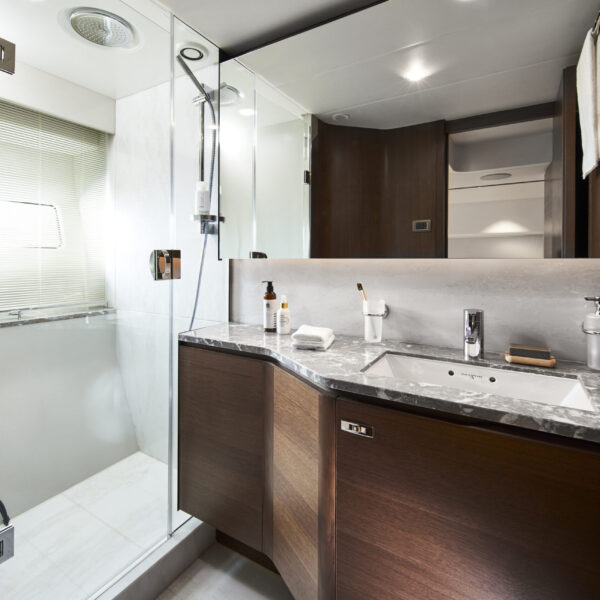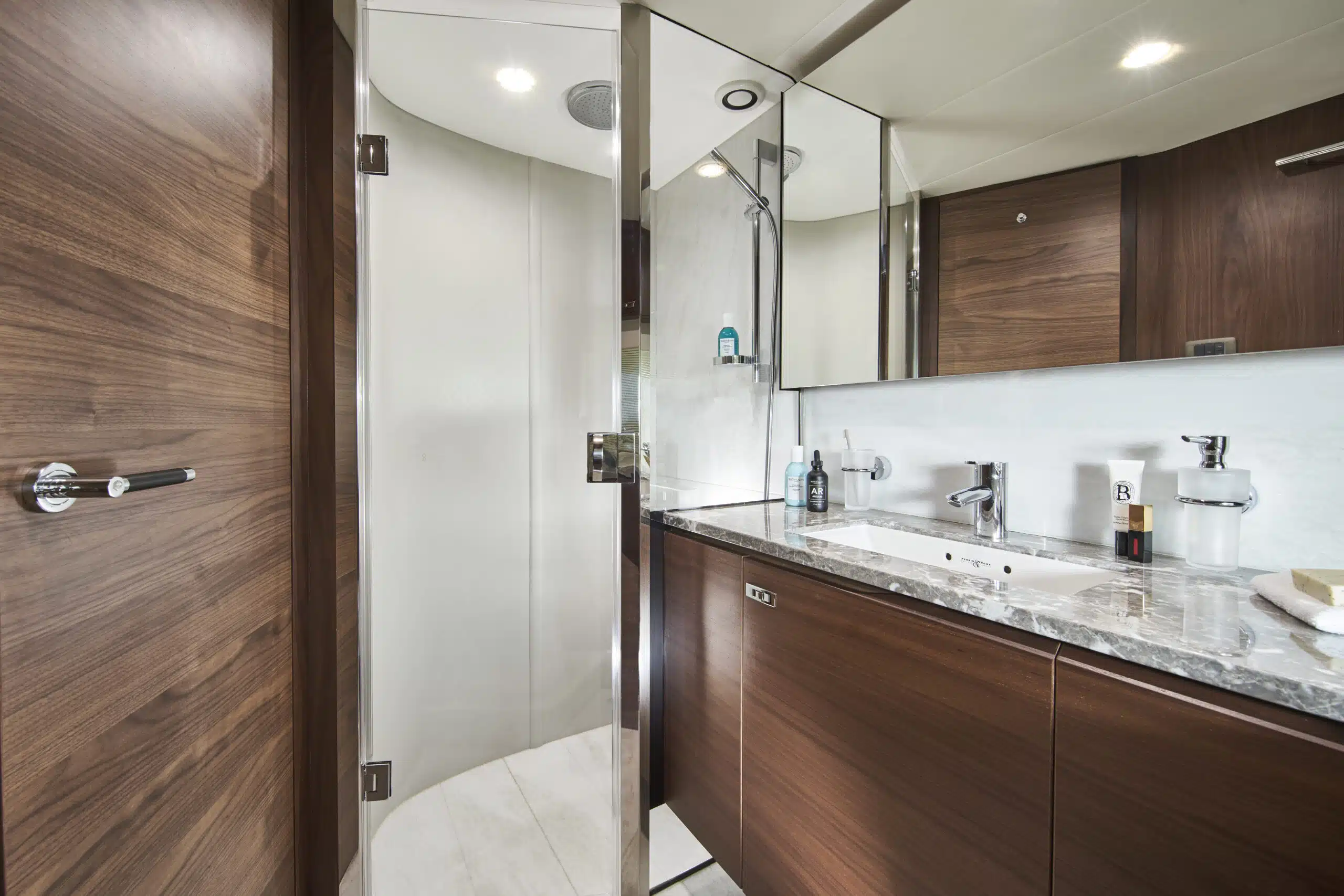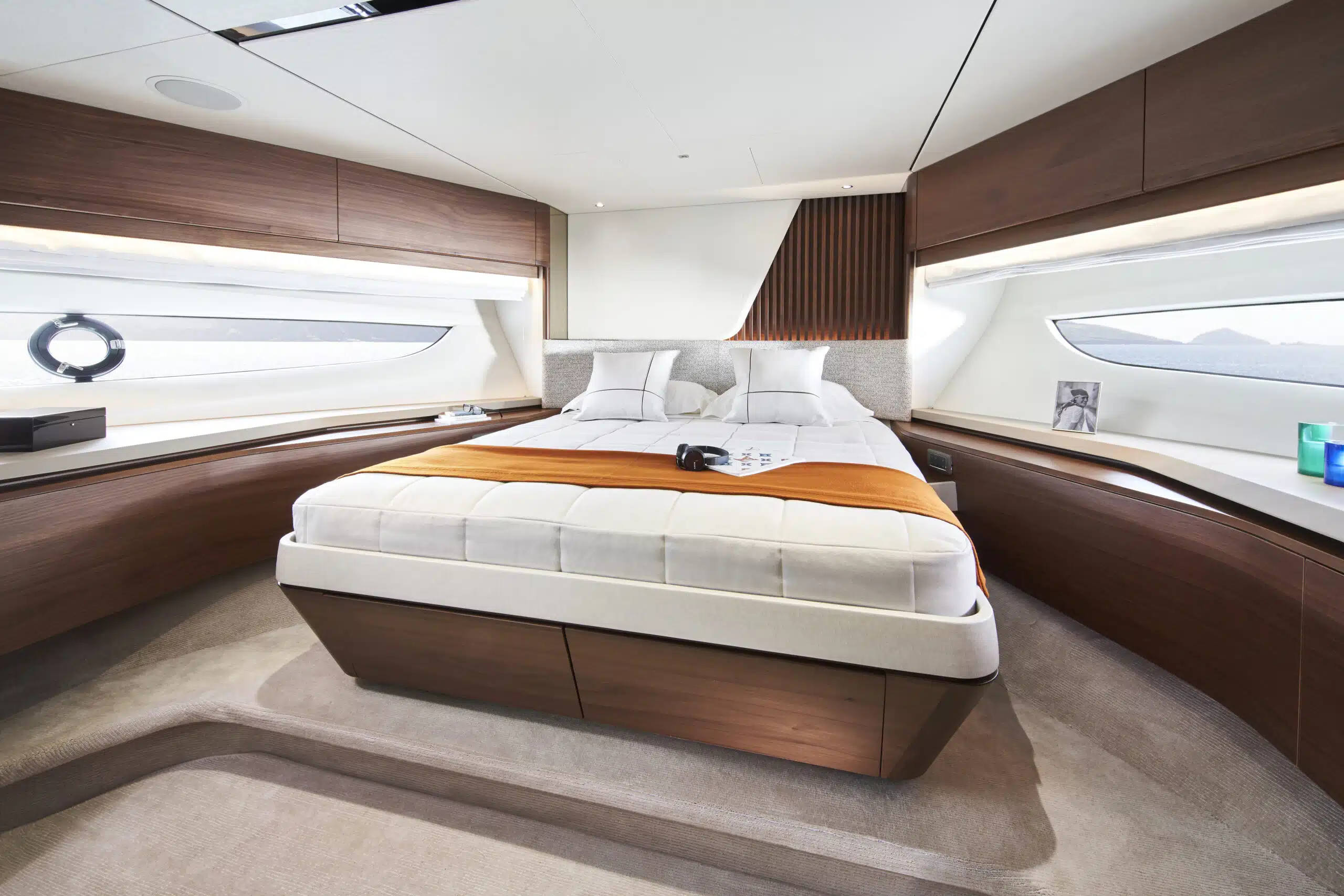 A nova Y85 é um triunfo do design contemporâneo. O seu perfil elegante e arrebatador abriga um interior magnífico que redefine o valor de referência para a vida moderna. A cabine do armador é um convite irresistível ao entretenimento ao ar livre com a grande área de refeições oposta ao minibar e complementada com um colchão para banho de sol. Um convés principal de nível único expansivo oferece amplo espaço de entretenimento, com um arranjo flexível para a cozinha. Três áreas de estar separadas asseguram a máxima privacidade para os hóspedes, possibilitando que a tripulação se movimente discretamente no iate. Com motores MAN V12 duplos que o impulsionam a uma velocidade máxima de 33 nós, ele voa sobre os seus contemporâneos sem olhar para trás. Imperdível, a nova Y85 é inconfundivelmente Princess.