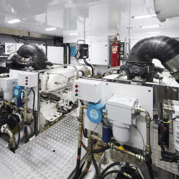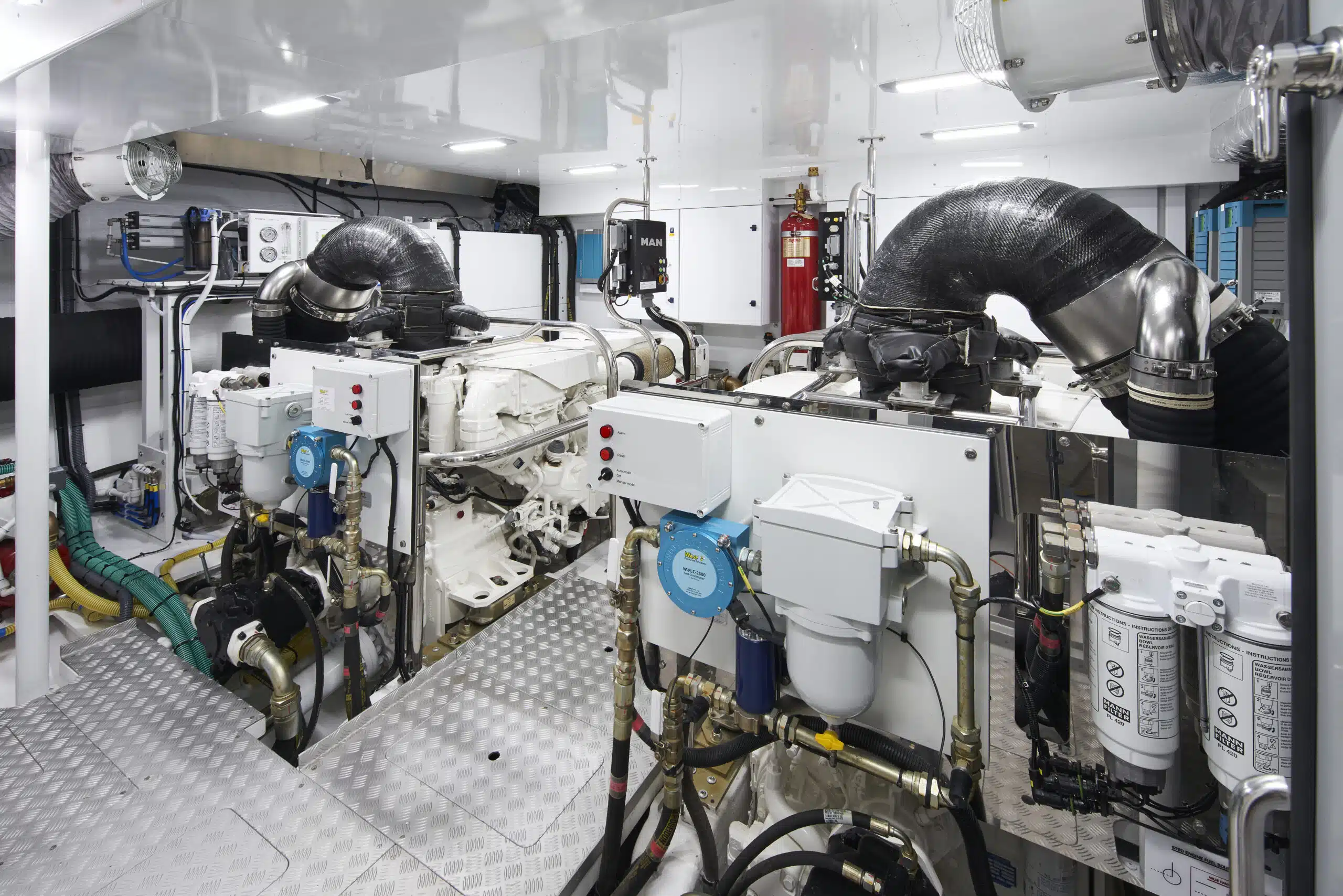 Com motores duplos MAN V12 propulsionando-a até a velocidade máxima de até 31 nós, a Y85 tem um desempenho fantástico o que é sem sombra de dúvida uma marca inconfundível Princess.